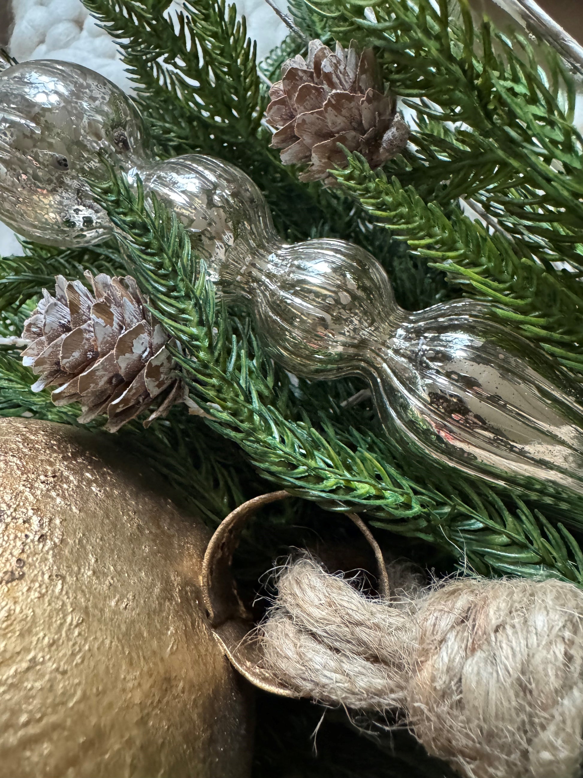 ✨ Set of Four Mercury Glass Finial Ornaments – Elegant heirloom-style pieces that shimmer with old-world beauty